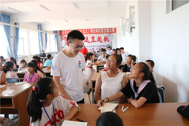 课间,孩子们纷纷聚在队员们身边,就他们感到很向往的大学生活提出疑问,孩子们的问题千奇百怪,队员们都一一耐心解答,并鼓励他们一定要对自己喜欢的事情敢于坚持。