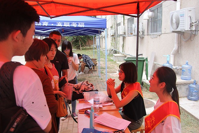 在家长休息交流区,学生联合会成员为新生家长提供新生报到注意事项咨询,对于家长所存在的关于学院概况、专业情况及宿舍环境等的疑问进行解答,便于家长对学校及学院的了解,逐渐地让家长放下心来,帮助新生更好地适应大学生活。同时,学院设立学院简介、学科专业设置、科技创新和“三下乡”等相关工作展板,帮助新生和家长了解学院近年来在各方面取得的成就。