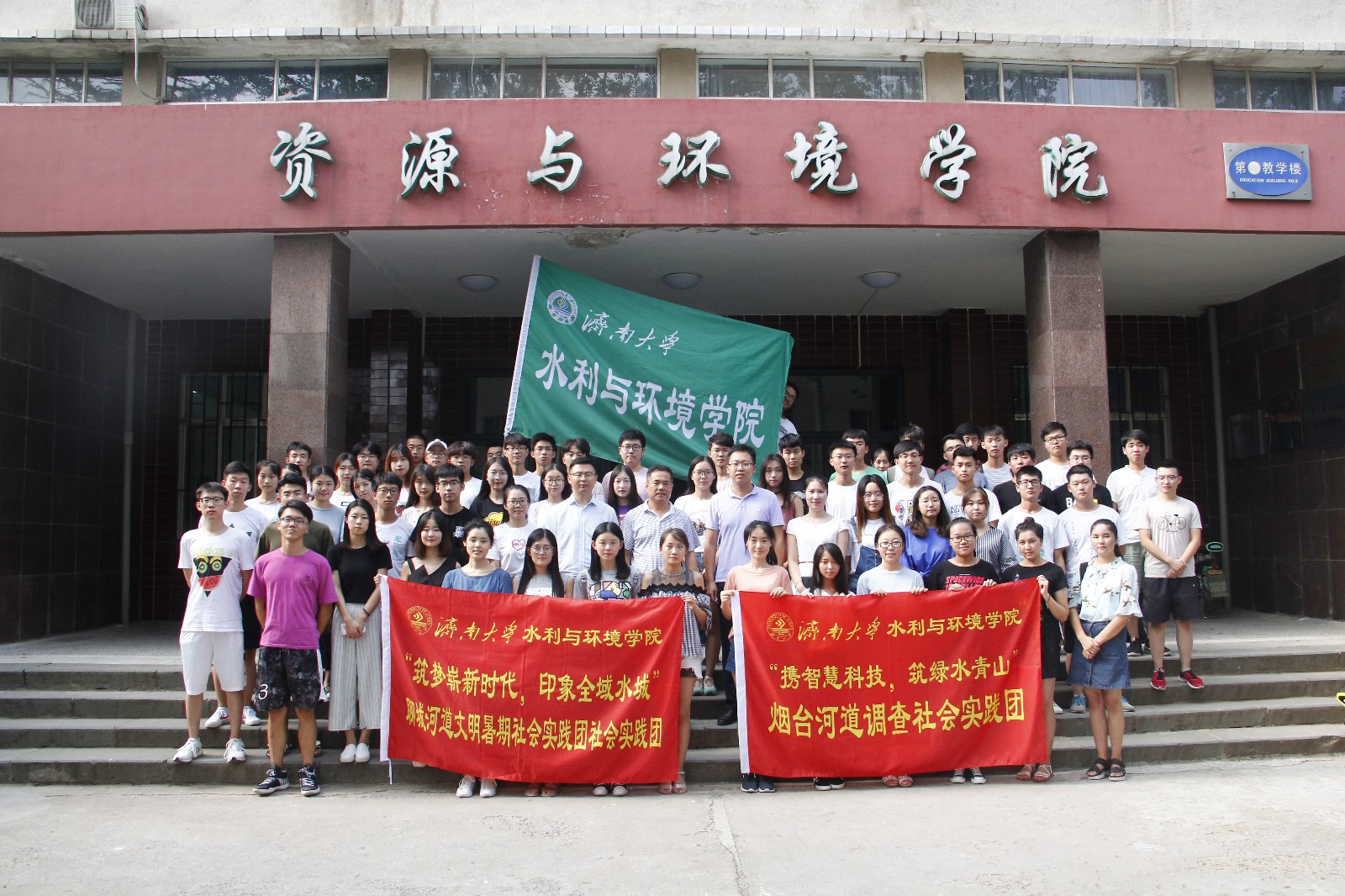 郝老师在仪式上指出,大学生暑期社会实践活动是推动大学生素质拓展的好举措,是引导大学生在实践中成长成才的好途径,也是加强大学生思想政治工作的好载体。他对参加活动的青年志愿者提出具体要求:一、各实践团队应增强安全意识,树立安全第一思想;二、各实践团队要有自强不息、追求卓越的精神,努力扩大活动覆盖面,提高活动实效性;三、各队员要积极投身社会实践,充分发挥自身专业特长,带着满腔热情和奉献之心,在社会服务中大显身手,实现人生价值。牢记当代青年责任和使命,谱写出美好青春乐章。尹鑫老师以实践在路上为主题,对学习、情感、成长、安全四方面做具体讲解,并希望在座同学通过本次“三下乡”活动有巨大蜕变。高蓉蓉老师则根据新闻特点,突出强调新闻的时效性以及宣传平台,要求每支队伍做好宣传工作。启动仪式结束后,老师与十支队伍在九教门前拍照留念。