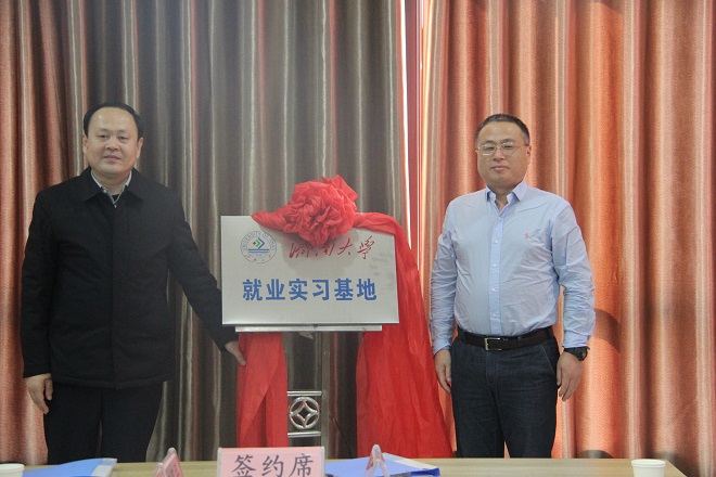 最后,资源与环境学院院长徐征和与乐陵市铁营镇党委书记、循环经济示范园党工委书记李涛签署共建就业实习基地合作协议,威尼斯9499登录入口教务处处长黄加栋与乐陵市人民政府副市长殷宗锋共同为就业实习基地揭牌。