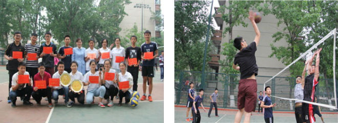 比赛开始之前,队员们早早来到场地进行热身运动。下午三点半,决赛正式开始。第一场比赛比分一路吃紧,男排健儿变换战略战术,接连几个扣杀将比分迅速拉开。资源与环境学院以25:20拿下第一场。双方队员稍作休整后第二场开始,美院队员吸取第一场经验教训,以18:25追平一分。资环队员们顶住压力,凭借扎实的基本功和默契的配合,采用精湛的吊球技术让对方频频失球,一鼓作气以15:7大比分2:1拿下整场比赛。女排决赛中,在第一场失守一局情况下,第二场调整状态,一个个精彩扣球、拦网,双方队员都充分发挥出个人技术及战术配合,但最终以19:25不敌商学院惜败。至此,持续了两周的排球赛也圆满画上了句号。