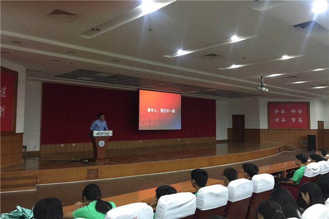 9月19日上午,威尼斯9499登录入口有幸邀请到学工处张晶老师于威尼斯9499登录入口第二学术报告厅为2018级全体新生进行主题为“我们的向往:做爱国励志、求真力行的新时代青年”的专题讲座。学生办公室主任、2018级辅导员郝伟,2016级辅导员白健到场参加。