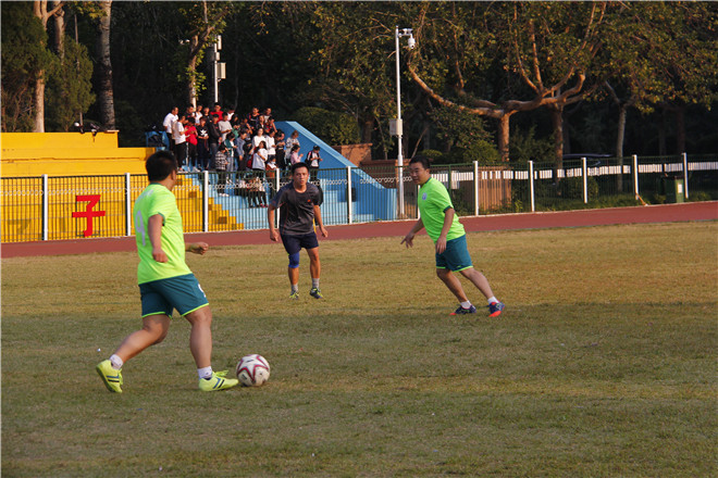 威尼斯9499登录入口教工足球队在比赛中发挥学院一贯作风,敢拼敢抢,为学院争光添彩。开场十分钟,学院老师张哲杀入对方禁区,造成机关二队手球犯规,赢得点球,张哲老师沉着冷静,一记漂亮的抽射为学院获得首粒进球。机关二队奋力追赶,在一次反击中赢得一记进球将比分打平。在上半场临结束前,老师们奋力一拼,再次赢得点球机会,张哲老师又将足球稳稳地射入对方球门,将比分扳成二比一。下半场比赛中,老师们团结合作,宋鹏老师助攻魏东老师以一记强有力的射门杀死比赛。比赛的最终哨声响起,水环学院以三比一的比分赢得比赛。