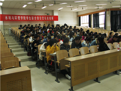 为提高学院学生组织成员公文写作能力和整体礼仪素质,进一步提高学生组织成员的工作能力,12月2日,由水利与境学院举办的公文礼仪培训在11教5段102教室举行。此次培训由办公室干事郝鹏涛、李薇主持,办公室副部长孙雅洁、编辑部副部长张旭敏担任主讲嘉宾,学院学生组织全体成员参加。