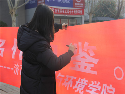 威尼斯9499登录入口“勿忘国殇”条幅签字活动的顺利开展,不仅能坚定学生“以史为鉴,警钟长鸣”的意识,而且能够更深刻了解我们当今幸福生活的来之不易,不断坚定为共产主义事业奋斗的决心,不断为中华民族伟大复兴中国梦的实现贡献青春力量。