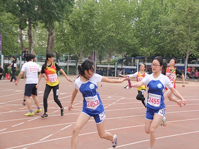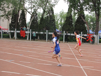 赛前,运动员们在赛道旁进行热身,并详细讨论了比赛的各项细节与注意事项。随后运动员们从容不迫地走进跑道中。裁判的预备,运动员们如同弦上箭,观众们屏住呼吸,伴随一声枪响,运动员们像飞箭一般冲向前,带着一往无前的气势,脚踏跑道,冲向前方。运动员们互不相让,你追我赶,一度将比赛推向高潮。而观众席中的学子们热情高涨,为运动员们呐喊助威,运动员们深受鼓舞,奋勇直前。水环学子在起跑一直奋起直追,不断缩小与对手的差距,凭借着高质量的换棒过程与过硬的弯道技术一度摆脱对手,并在最后的百米冲刺中不仅稳固自己的优势,超越了对手,同时超越了自己,最终荣获第二名佳绩。