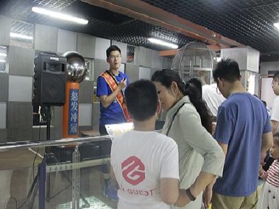 上午七点二十分,志愿者们准时到达新西门,乘车前往山东省科技馆。志愿者们为方便工作开展,到达地点后首先熟悉工作环境,随后工作人员为每个人分配工作,12人分为四组,负责不同的楼层和工作。工作人员还强调了工作时的注意事项,比如不能玩手机,牢记换班时间,认真工作等等,充分体现了工作的严肃性。九点左右,工作正式开始,每个人都到达自己的岗位。由于科技馆小孩居多,电梯旁站岗的同学时刻注意来往行人,确保安全,一刻也不敢松懈。4D电影售票处也渐渐忙碌,志愿者们耐心地为大家讲解着各种电影,来帮小朋友和家长找到适合的电影。在二楼展厅有着各式各样的科技,志愿者们向小朋友及家长进行了高压放电演示,还为大家讲解了因“摩擦起电”而发生的有趣的科学现象“怒发冲冠”,引来大家一阵阵惊叹。种种有趣的现象带给大家的除了笑声,还有对科技产生的浓厚兴趣和更深层次的理解,让大家明白科学技术并非遥不可及,而是与生活息息相关的。而大家在科技馆的一天也在欢声笑语中度过。