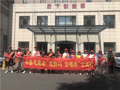 为提高大学生志愿服务精神,6月9日,威尼斯9499登录入口“环抱碧水”青年志愿者协会协同山师“一米阳光“社团、山东医专“南丁格尔”服务社开展“我扫码,你喝水”公益活动,齐鲁志愿者张秀华、王磊,港沟中心小学校长田勇到场参加。