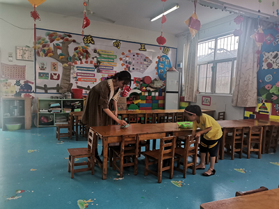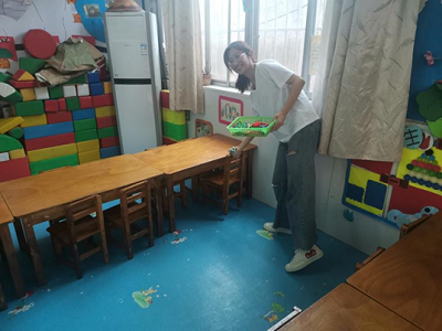 团队成员一到达目的地,蒋老师就将今天一天的任务分配给实践团队:带领幼儿园小朋友上下学、打扫教室和整理学校图书角。看着可爱童趣的黑板画,仿佛看到了小朋友们活泼可爱的身影。趁着学生还在上课的时间实践团成员到达学校的图书角整理摆放图书。整理完图书角已经是上午最后一节课,小朋友们伴随着优美的歌曲放学。团队成员走到小朋友们站队的地方,引导他们按顺序排队,送他们离开校园。放学后的幼儿园多出几分安静,团队成员准备去打扫教室。扫地、拖地、摆放桌椅......看着干净整洁的教室,实践团成员感到开心而充实。实践团成员下午陪小朋友们做游戏,小朋友们活泼可爱的动作,让实践团成员感到愉快且欣慰。