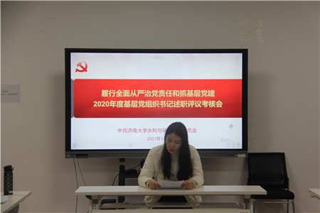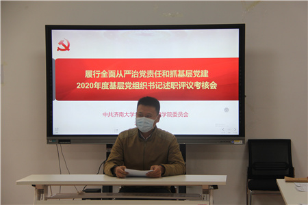 为深入学习贯彻习近平新时代中国特色社会主义思想,贯彻落实党的十九大和十九届四中、五中全会精神,进一步压实党组织书记履行全面从严治党主体责任,推动全面从严治党向基层延伸,切实提高党的建设质量,按照学校党委统一工作部署。1月12日下午,威尼斯9499登录入口2020年度党支部书记履行全面从严治党主体责任和抓基层党建述职评议考核会在学院会议室召开。学院党委班子成员、各党支部书记、部分教师代表参加会议,会议由学院党委副书记张良红主持。