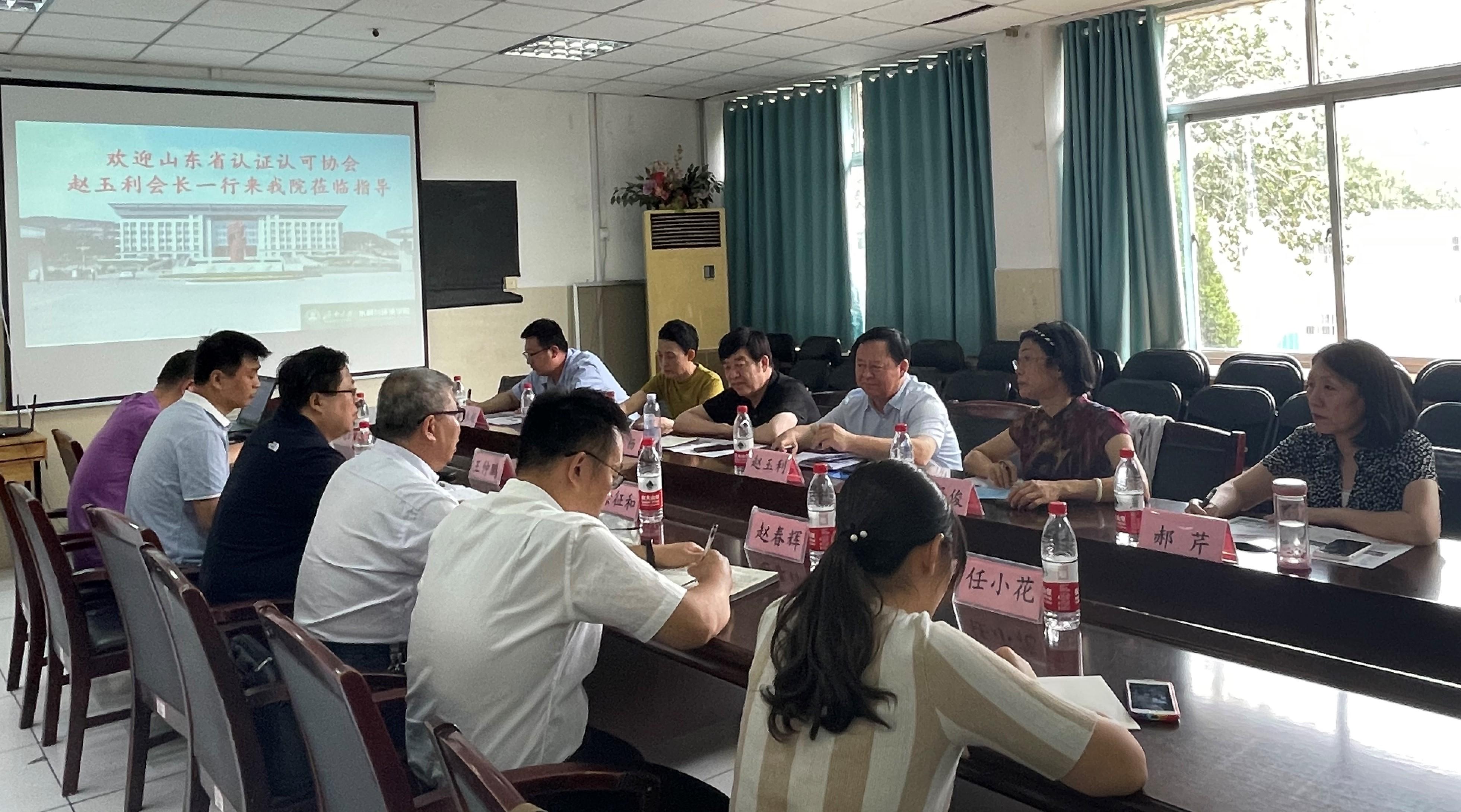 2021年9月16日下午,山东省认证认可协会会长赵玉利、副会长王扬、济南市环境监测中心站研究员王泽俊等一行人来威尼斯9499登录入口访问交流,并对山东省认证认可协会环境检验、检测技术人员实操(实训)培训基地建设进行了讨论。威尼斯9499登录入口院长徐征和、副院长王仲鹏、环境系系主任赵春辉等出席了此次讨论会。