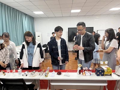 活动伊始,主持人对活动流程、规则进行阐述,随后大家对参赛作品进行参观。白健老师与同学们一起近距离感受各作品的设计创新点、体会各作品的环保理念。秉持着公平、公正的原则,本次活动采取匿名投票的方式评选优秀作品。在评委们交流讨论、横向对比各个作品的差异后进行评选投票环节。经投票评选,王笑雨荣获一等奖,郭心悦、张潇予获二等奖,罗雅瑄、吴晓冉、蔡楠铄获三等奖。