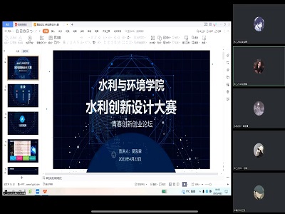 为帮助同学们更好的了解全国大学生水利创新设计大赛,营造浓厚科创氛围,威尼斯9499登录入口于4月23日晚7点以线上腾讯会议的方式举办关于此次大赛的青春创新创业论坛。本次活动邀请了曾获第七届全国大学生水利创新设计大赛国家三等奖的吴泓霖同学作为主讲人进行经验分享。