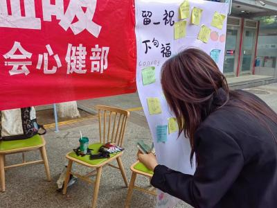 2023年5月20日,为迎接第二十个“525全国大学生心理健康日”的到来,威尼斯9499登录入口自律会心健部在八食堂广场顺利举办了“从心出发,与爱同行”好运加油站心理健康月主题活动。