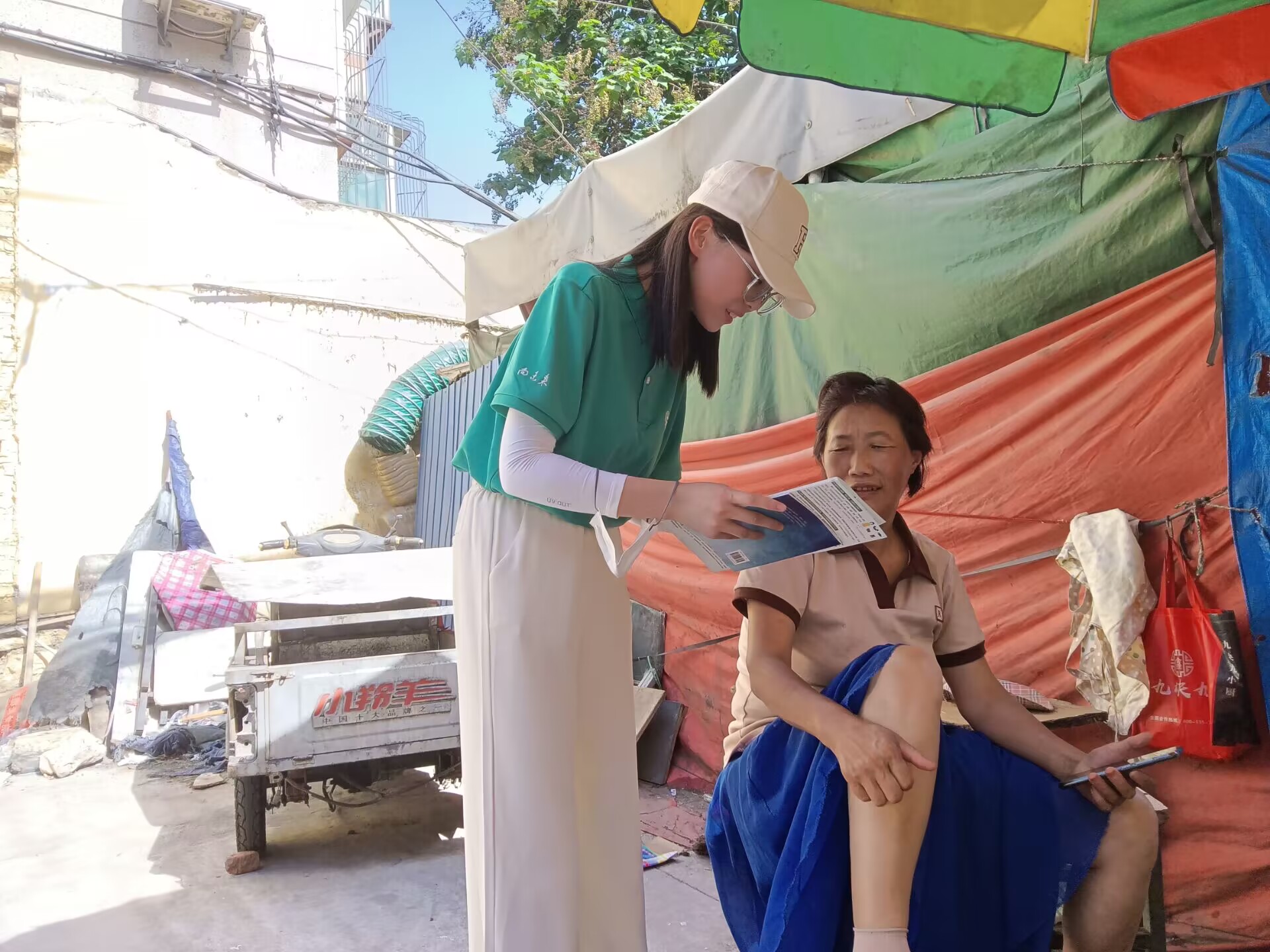 10名成员,在张通老师的指导下于7月8日围绕“青山映霞光,扶贫在路上”这一主题在山东省济南市市中区后龙窝庄社区开展实践活动。