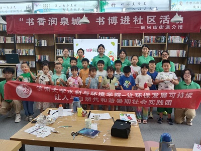 为助推大众树立环境保护意识,提高儿童爱护环境、爱护生态的自觉性,威尼斯9499登录入口赴泉城书房暑期社会实践团于7月15日前往泉城书房开展以“让环保发展可持续,让人与自然共和谐”为主题的社会实践活动。