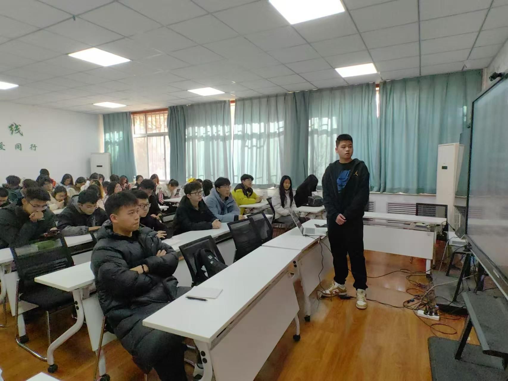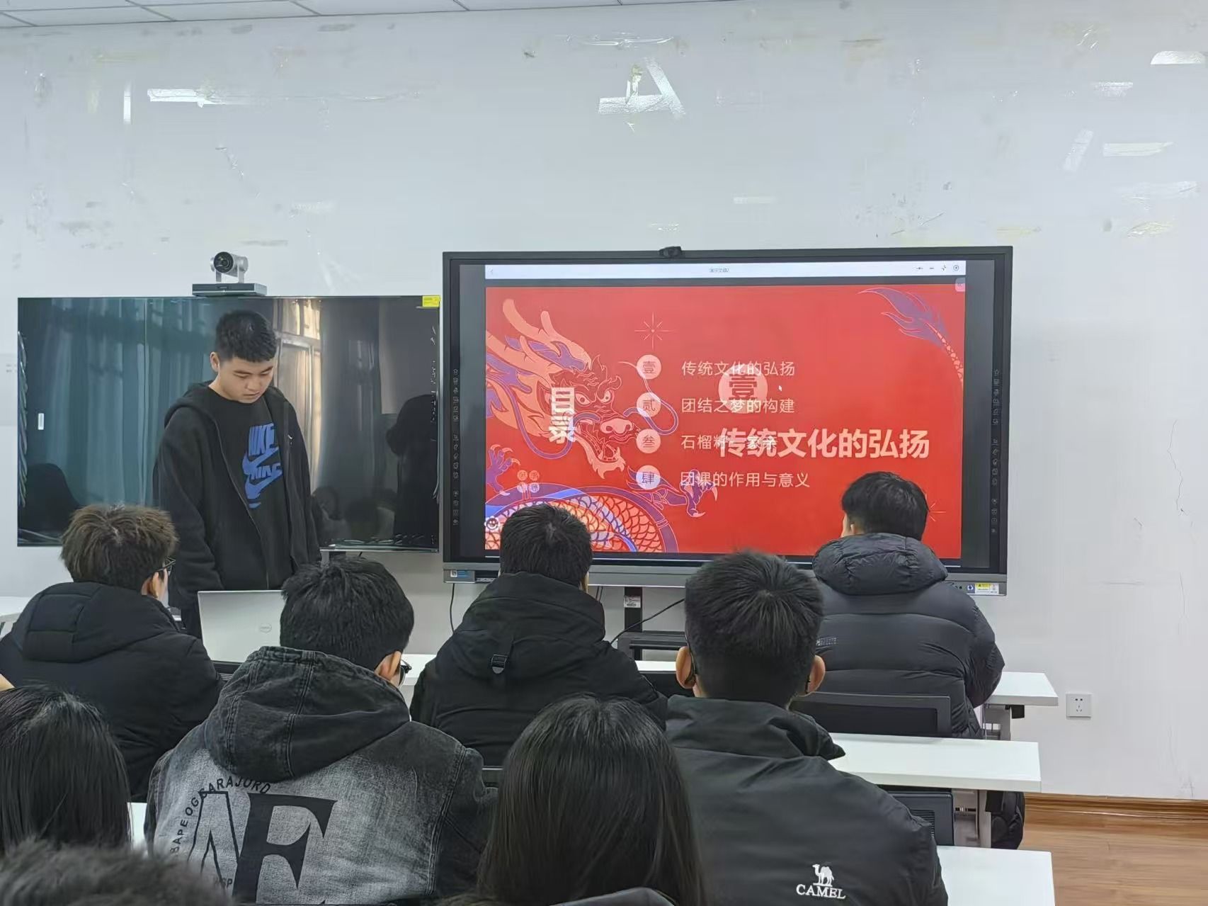 团课伊始,朱秦可同学围绕“弘扬传统文化,共筑民族团结之梦”的主题进行了深入讲解。他介绍传统文化是民族的根基,弘扬传统文化有助于提升民族自豪感,增强民族凝聚力。团结是实现民族共同繁荣的关键,需要各民族确立共同目标,加强交流互动。最后,朱秦可同学引用了“石榴籽一家亲”的比喻,强调各民族间应紧密团结、相互尊重,共同推动民族文化的发展与进步。