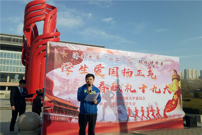为纪念“一二•九”爱国运动,深入学习党的十九大精神,12月9日,共青团威尼斯9499登录入口委员会主办、威尼斯9499登录入口学生会承办的以“爱国青年扬正气,青春献礼十九大”为主题的环校健步走活动在北苑大操场和升华广场举行。资源与环境学院2017级新生积极参与其中。