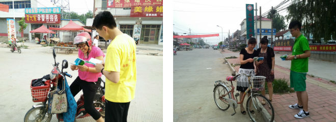 通过询问当地村民,实践团成员了解到了南驿村地势西高东低,污染物集中于村中河流下游的情况。随后,实践团成员重点对河流下游进行了详细的调查和分析,结果表明污染主要来自于企业排污和村民生活垃圾的随意丢弃。即使在村中有垃圾站的情况下,仍有不少村民因图方便而直接向河中丢垃圾。针对当地村民未能建立起足够的环保意识的现状,实践团成员采取了向村民发放环保知识宣传册的方式,努力使村民重视赖以生存的农村家园。村民认真倾听实践团成员科学生动的讲述,频频点头表示赞同,并表达了希望生活环境变得更好的愿望。