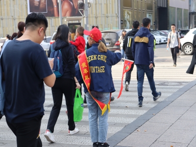 2019年10月20日上午10点,威尼斯9499登录入口于芙蓉街周边交通路口组织交通志愿指挥公益活动,活动由齐鲁志愿者协会外联部部长张秀华指挥,学生志愿者参加。