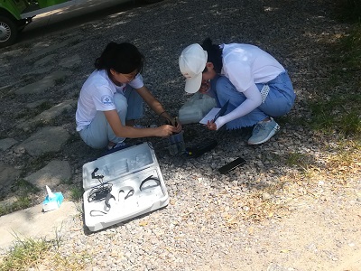 实践团成员在相关老师的带领下来到调查地点,首先大家对当地水资源进行取样。在济西湿地天鹅湖旁取样后,又在清漪亭、桃花源、白鹭洲、槐荫入口处和湿地外等共计11处先后取样(地表水进行取样)。下午,大家对周边水库进行取样。取样完成后,队员们进行数据分析,对本次活动进行整理总结。尽管周边道路崎岖,天气炎热,但队员们和老师都在认真考察,秉承不怕苦不怕累的优良作风。