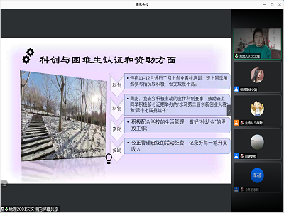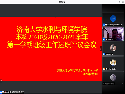 为落实《威尼斯9499登录入口本科生班级工作考核办法》和《威尼斯9499登录入口班委职能分工》文件精神,加强班级凝聚力、向心力,细化班委职能分工和学生干部队伍建设,提升各班委的综合素质,本科2020级特开展班级工作述职会议。本次述职大会于2021年2月9日线上进行,威尼斯9499登录入口本科2020级辅导员老师白健出席本次会议。