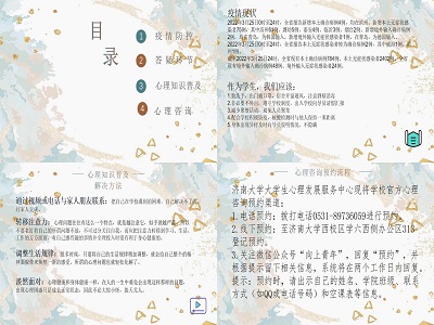 本次活动分为四个部分,首先主讲人播放有关疫情期间注意事项的视频,指导同学们做好疫情防护工作;接着进行答疑环节,通过开展线上会议的形式与同学们进行交流互动,回答同学们有关线上学习的疑问;然后播放关于缓解焦虑的视频,排解同学们的心理焦虑,营造关注线上学习、重视心理健康的氛围;最后留下心理咨询方式,关注同学们的心理健康状况,随时解决同学们的心理问题。本活动收集的疑问,后续将会在微信公众号璧水环林进行解答。