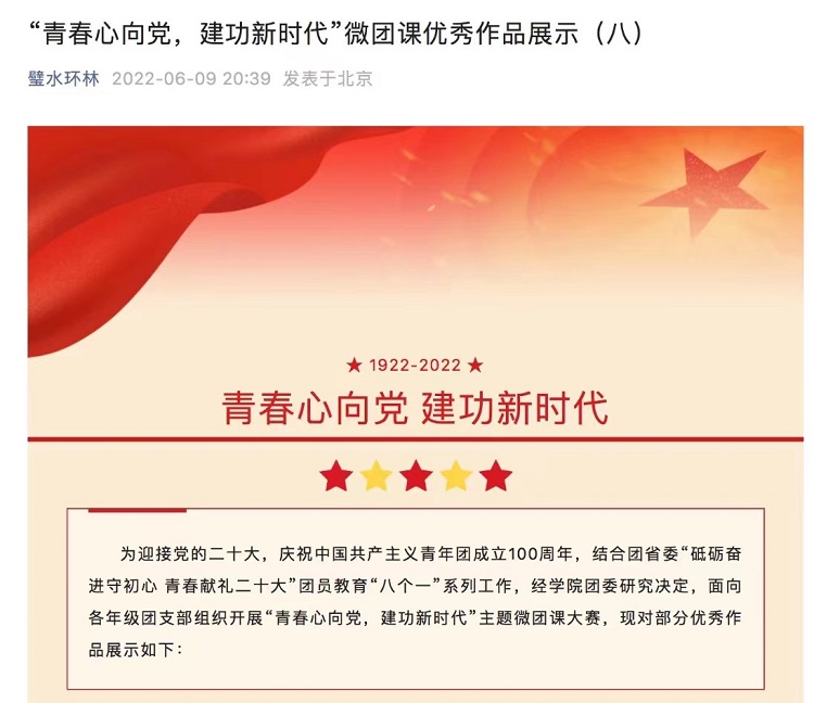 各支部组织广大师生党员通过人民网 “红色云展厅”线上平台组织红色展馆网上参观,采取集中观看、个人自行浏览等方式,线上参观了“山东——济南大峰山党性教育基地”、“红色云展厅——渡江战役”等;组织红色主题论坛,开展了“疫情防控形势下如何发挥一名党员一面旗帜,一个支部一座堡垒的先锋模范作用”主题讨论;开展红色主题班团活动,开展“砥砺奋进守初心,青春献礼二十大”主题教育实践活动和“党的青年运动史”“新时代的伟大成就”等主题团日活动;上好红色思政大课,书记和院长带头为广大师生讲授“学习党代会精神,勇担新时代使命”和“弘扬伟大抗疫精神,推动学院高质量发展”思政课;开展红色主题征文活动,组织喜迎二十大,同读一本书系列活动,学生积极踊跃参加,共收到书卷始于声,永远跟党走线上诵读作品24件,青春献礼二十大,强国有我新征程读书征文作品32件,秀丹青书法,展墨林之风摘抄作品35件;过好“红色传承”为主题的组织生活,开展“喜迎党的二十大,砥砺奋进新征程”为主题的组织生活,集中观看灯塔大课堂第34课;举办红色文艺演出,开展以艺抗疫、艺展风采公寓文化艺术节线上系列活动,通过多种文艺形式歌颂青春、歌颂祖国、歌颂党;组织红色历史知识竞赛,面向全院团支部开展“青春心向党,建功新时代”主题微团课大赛;产生红色文化研究成果,学院获评2022年学校党建研究课题2项。
