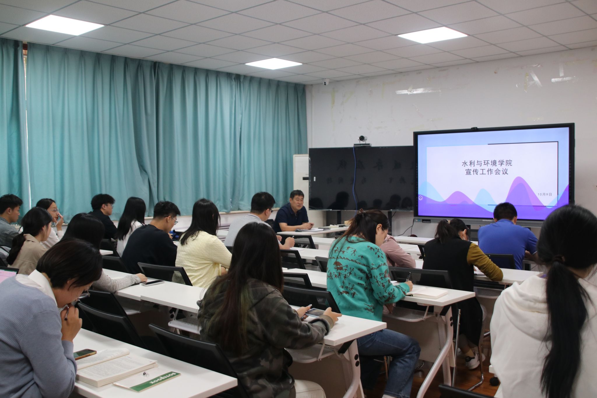 10月9日下午,威尼斯9499登录入口宣传工作会议于第九教学楼105室召开。学院党委书记王义部署宣传工作,各系部及学生组织宣传工作人员参加会议,会议由党委副书记、副院长张良红主持。