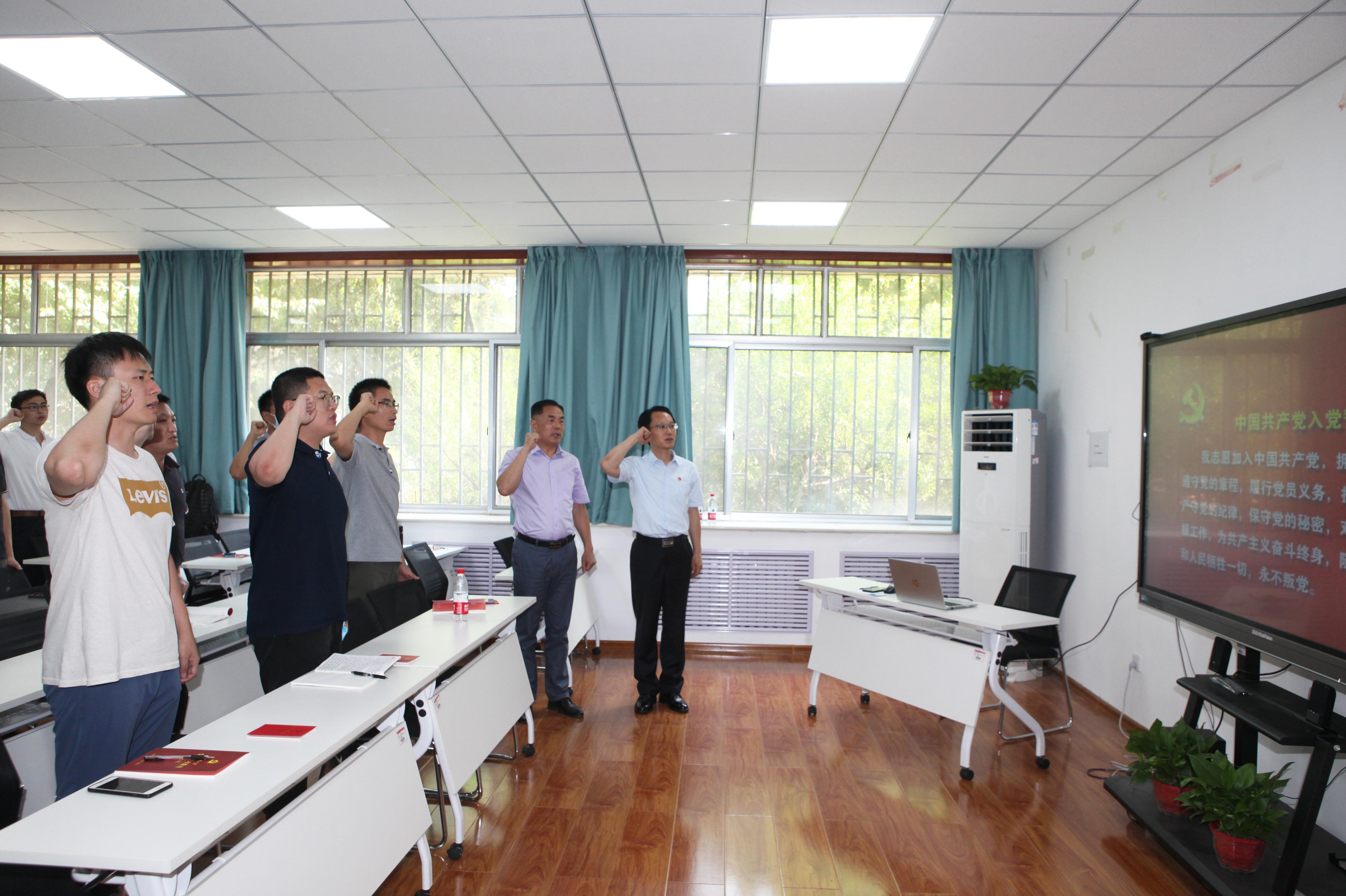 专题党课最后,面向鲜红的中国共产党党旗,贾海宁举起右拳,带领30余名教工党员重温入党誓词。一字一句许下的铮铮誓言,铿锵有力,表达的是教工党员们的拳拳爱党情、殷殷赤子心。