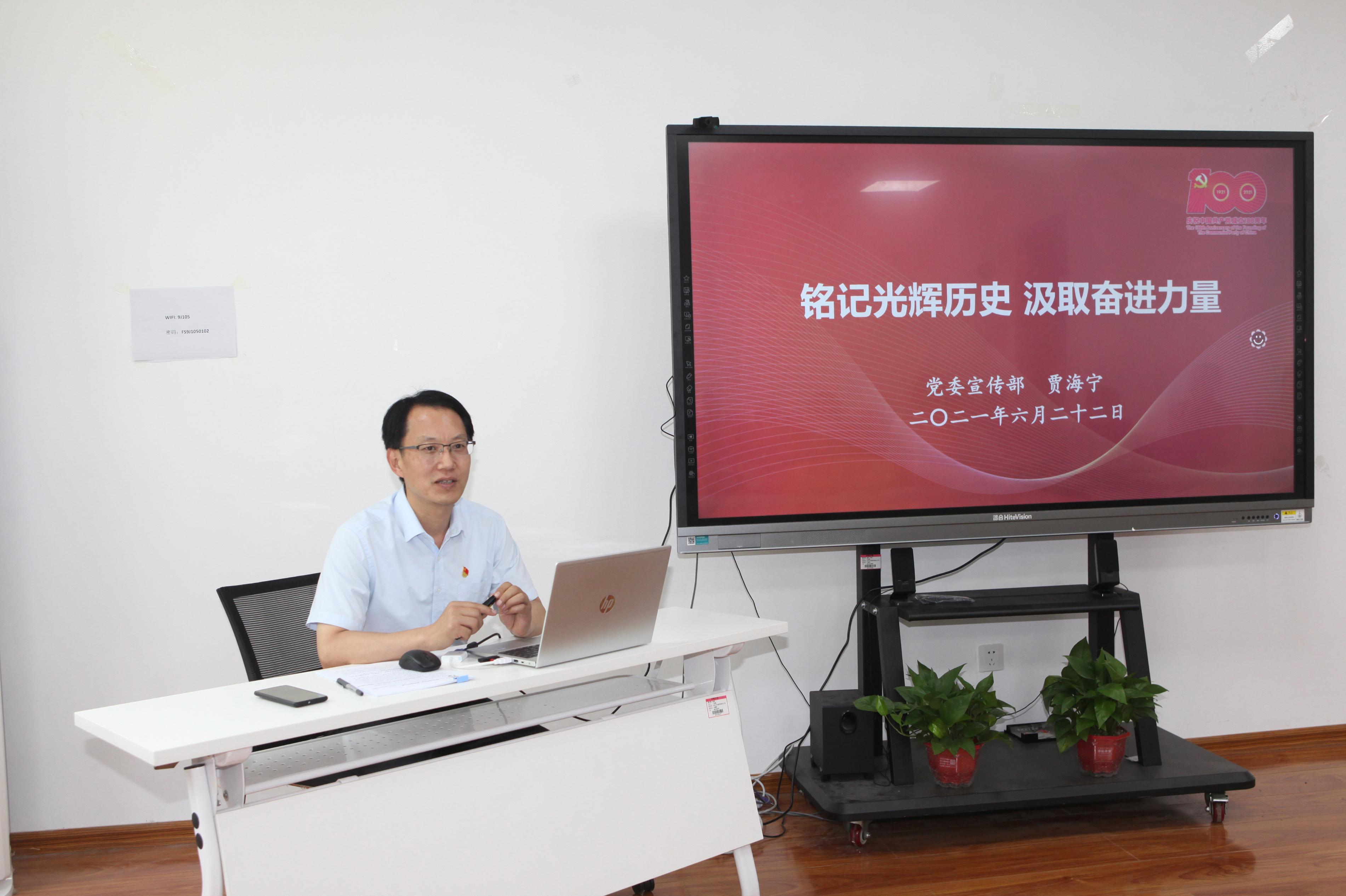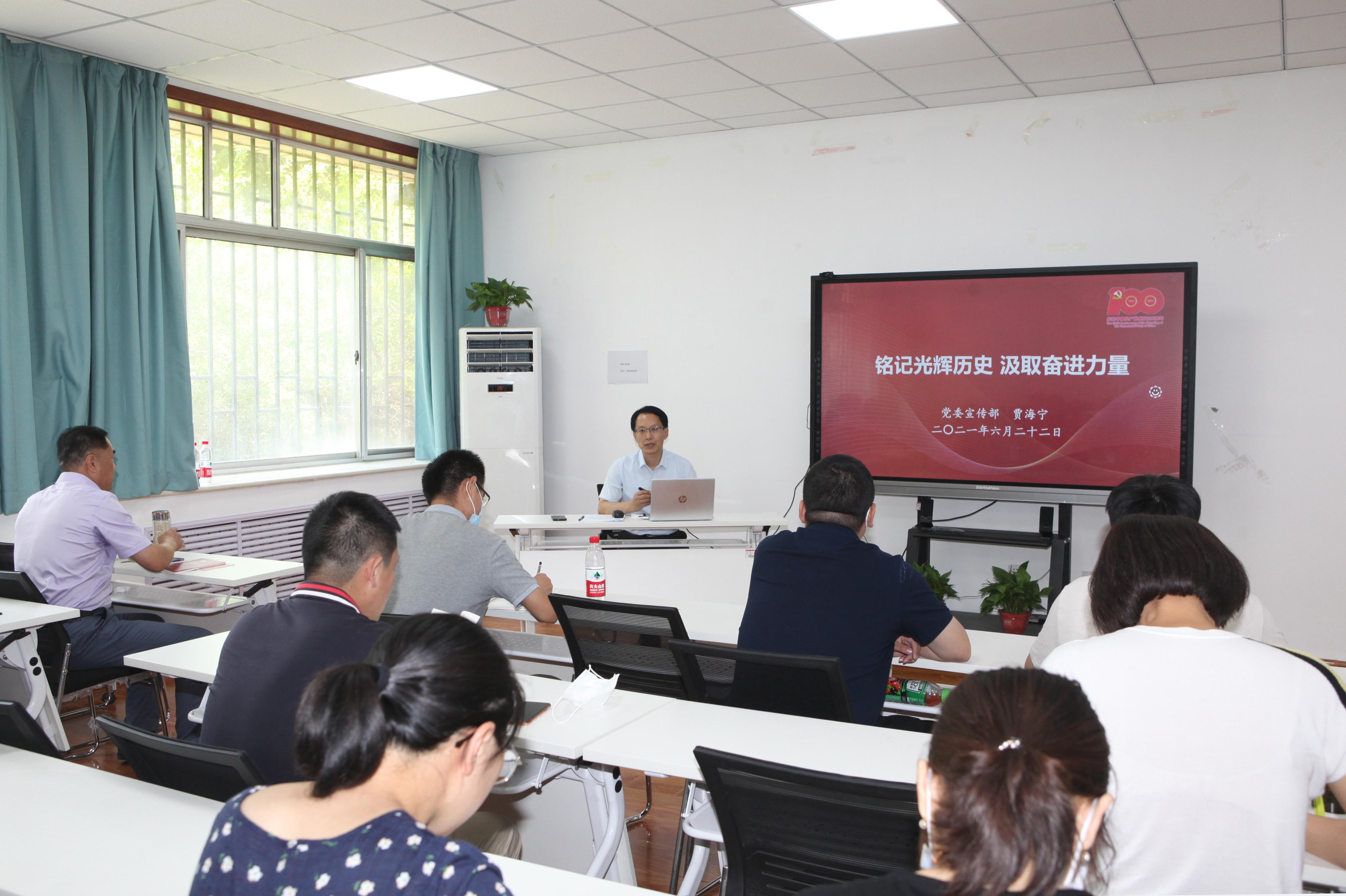 6月22日,学校党史学习教育领导小组办公室主任、党委常委、宣传部部长贾海宁在第九教学楼105室为威尼斯9499登录入口水利工程系教工党支部讲了题为《铭记光辉历史 汲取奋进力量》的党史学习教育专题党课。党课由威尼斯9499登录入口党委书记边健主持。