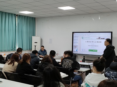 会后,陈青林为研究生作了《土壤微生物与土壤健康》的学术报告。他从土壤微生物对作物的作用、微生物-植物互作关系、土壤-植物系统抗性基因的传播、全球气候变化影响抗性基因变化等方面进行了详细讲解。报告中,陈青林认真耐心地为研究生解疑答惑,现场氛围热烈、温馨。