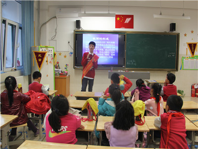 为推广环保理念,号召同学们保护环境,12月4日,威尼斯9499登录入口青年志愿者协会的志愿者们走进卧龙小学,开展志愿环教。