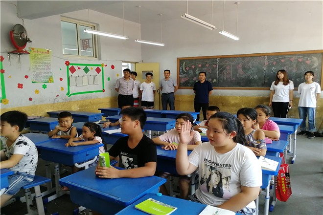在村支部委员会的宣传下,当地适龄儿童在家长陪同下陆续来到教室,队员们详细了解孩子们知识层面后,有针对性地展开教学活动。首先队员教学生们用简单的英语句子介绍自己,孩子们掌握情况良好。随后又教孩子们唱简单的英语歌曲并学习英语歌曲中的单词,孩子们学习英语歌曲踊跃积极,课堂氛围十分活跃。在课间十分钟休息后,队员向孩子们提出很多益智问题,启发孩子们从多种角度思考。最后给孩子们时间提出有疑惑的课内课外问题,由队员们一一对其进行解答和指导,鼓励孩子们开动脑筋,提高孩子们学习的积极性。队员们趣味十足的课堂和耐心的讲解获得了孩子们和家长的一致好评,也获得了赵书记、周处长、金书记和陶主任的赞许。