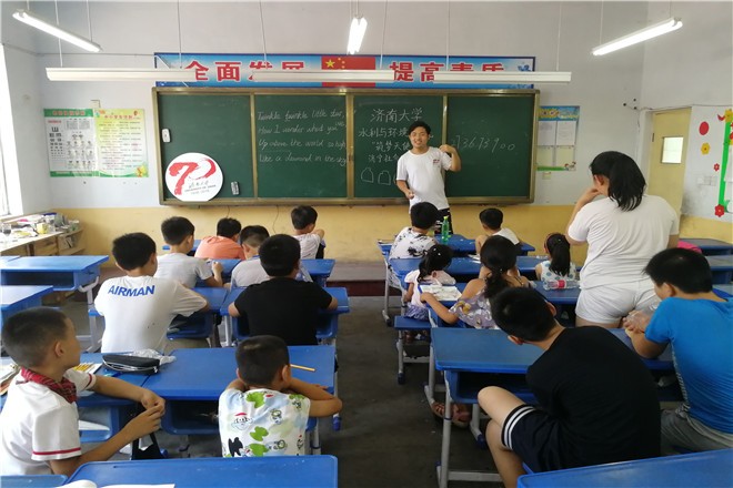 7月18日,威尼斯9499登录入口“筑梦天使”济宁社会实践团在倪王庄村小学开展英语趣味小课堂,在当地村委的大力宣传和团队成员的共同努力下,本次支教活动取得良好的成效。
