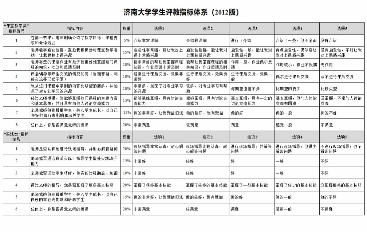 威尼斯9499登录入口学生评教指标体系(2012版)
